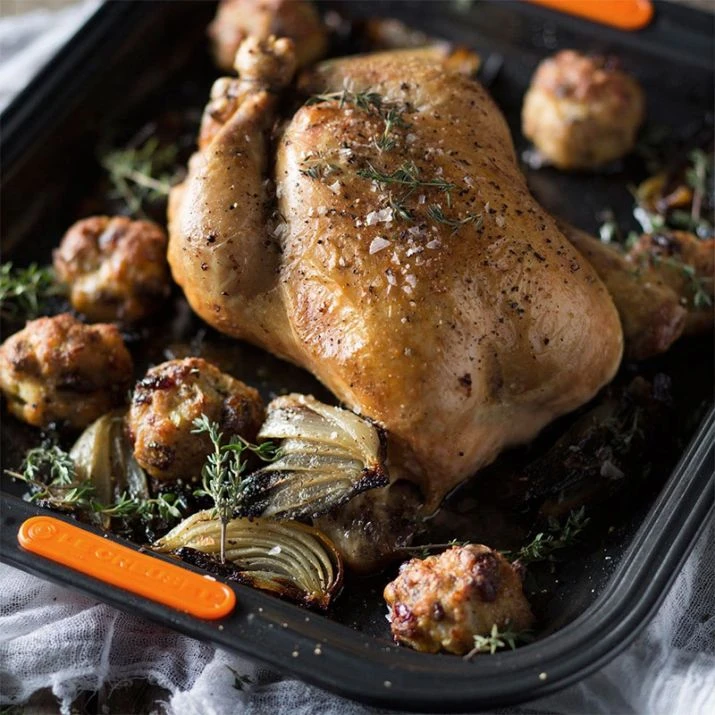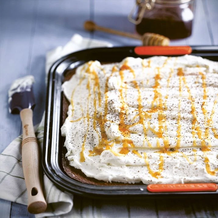 Bandeja antiadherente rectangular honda de Le Creuset, fabricada en acero al carbono de gran espesor.