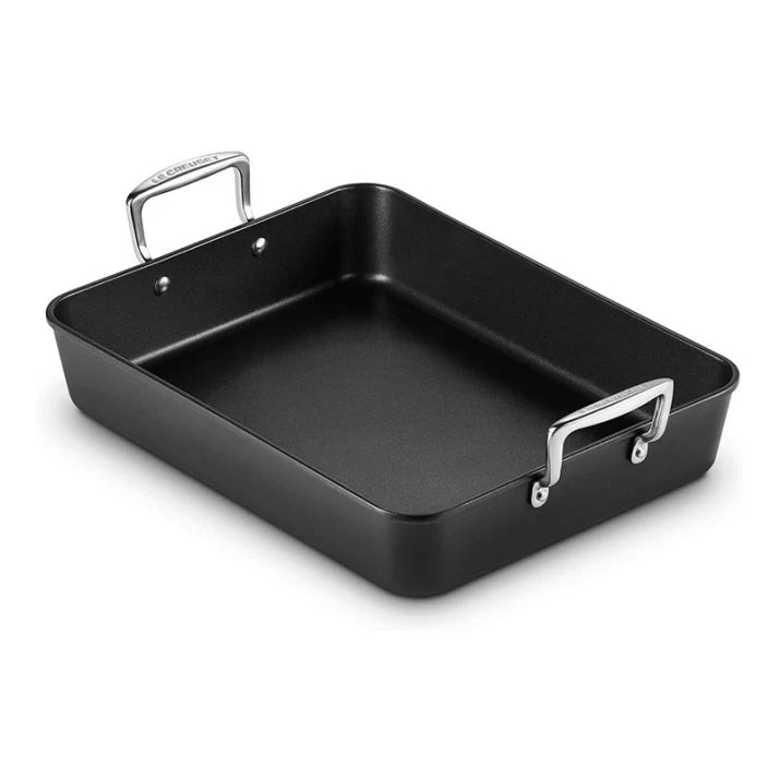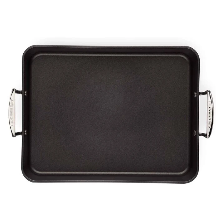 Bandeja asadora rectangular con asas de Le Creuset, de aluminio fundido y con antiadherente TNS PRO.