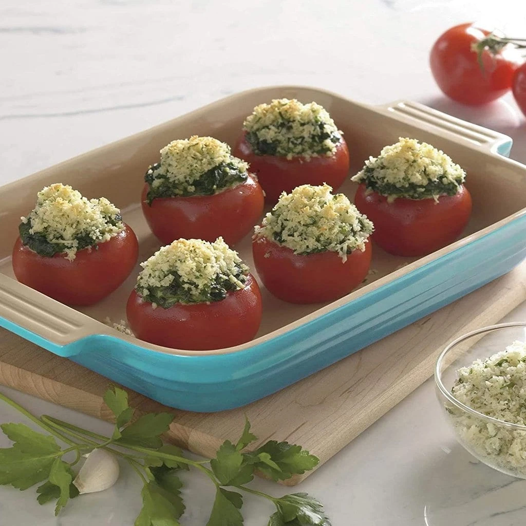 NOTA: Para garantizar la durabilidad de tu bandeja cuadrada Le Creuset no la utilices a fuego directo y evita contrastes térmicos.