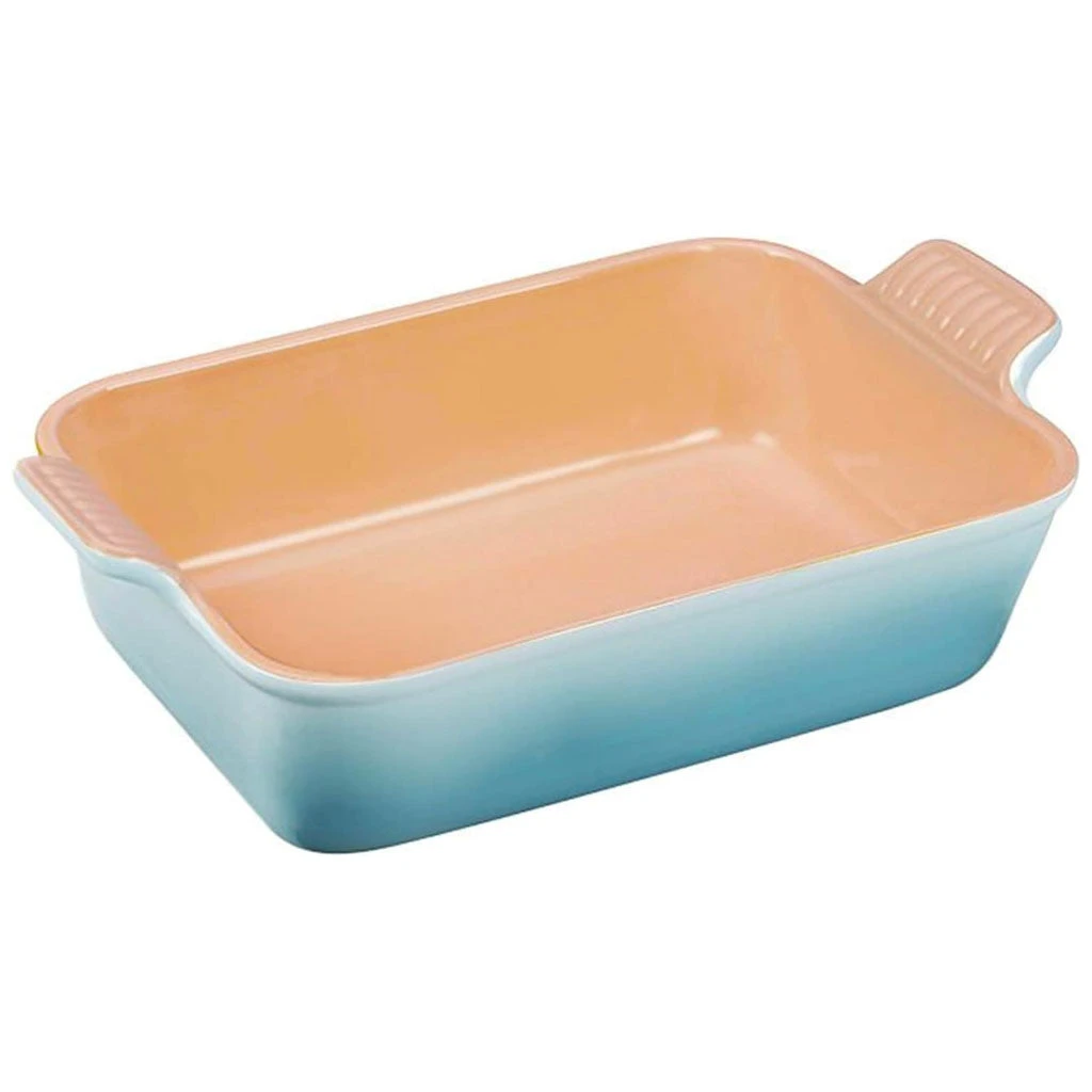 Por qué nos gusta la Bandeja rectangular Heritage Coastal Blue Le Creuset