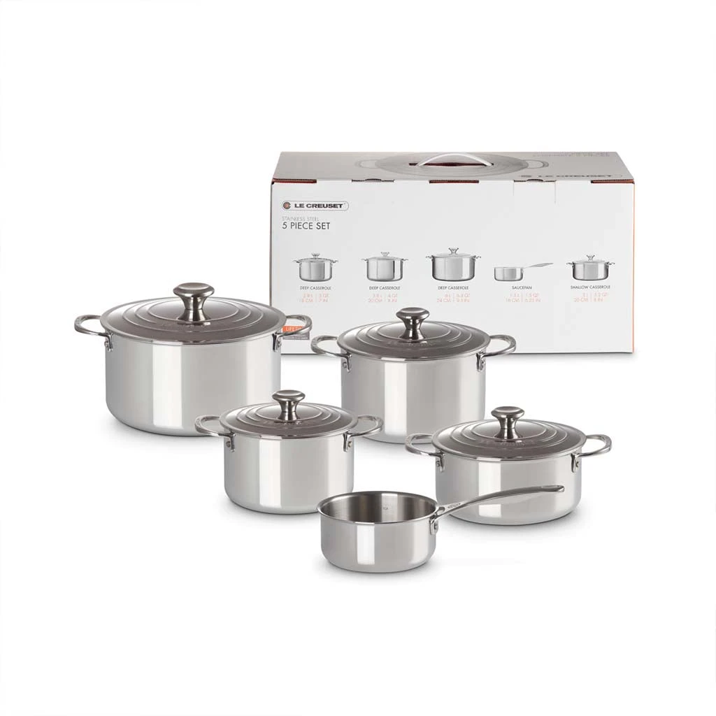 Por qué nos gusta la Batería de 5 piezas de acero inoxidable Signature Le Creuset