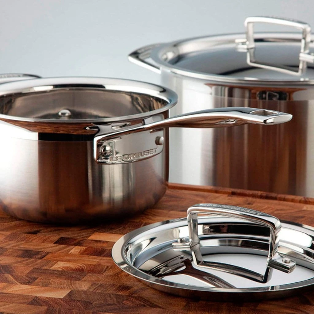 ¡Equipa tu cocina con una de las mejores baterías del mercado! Esta batería de Le Creuset está fabricada con acero inoxidable 18/10 reforzado con titanio para mantener su precioso brillo y peculiar color tornasolado durante muchos años.