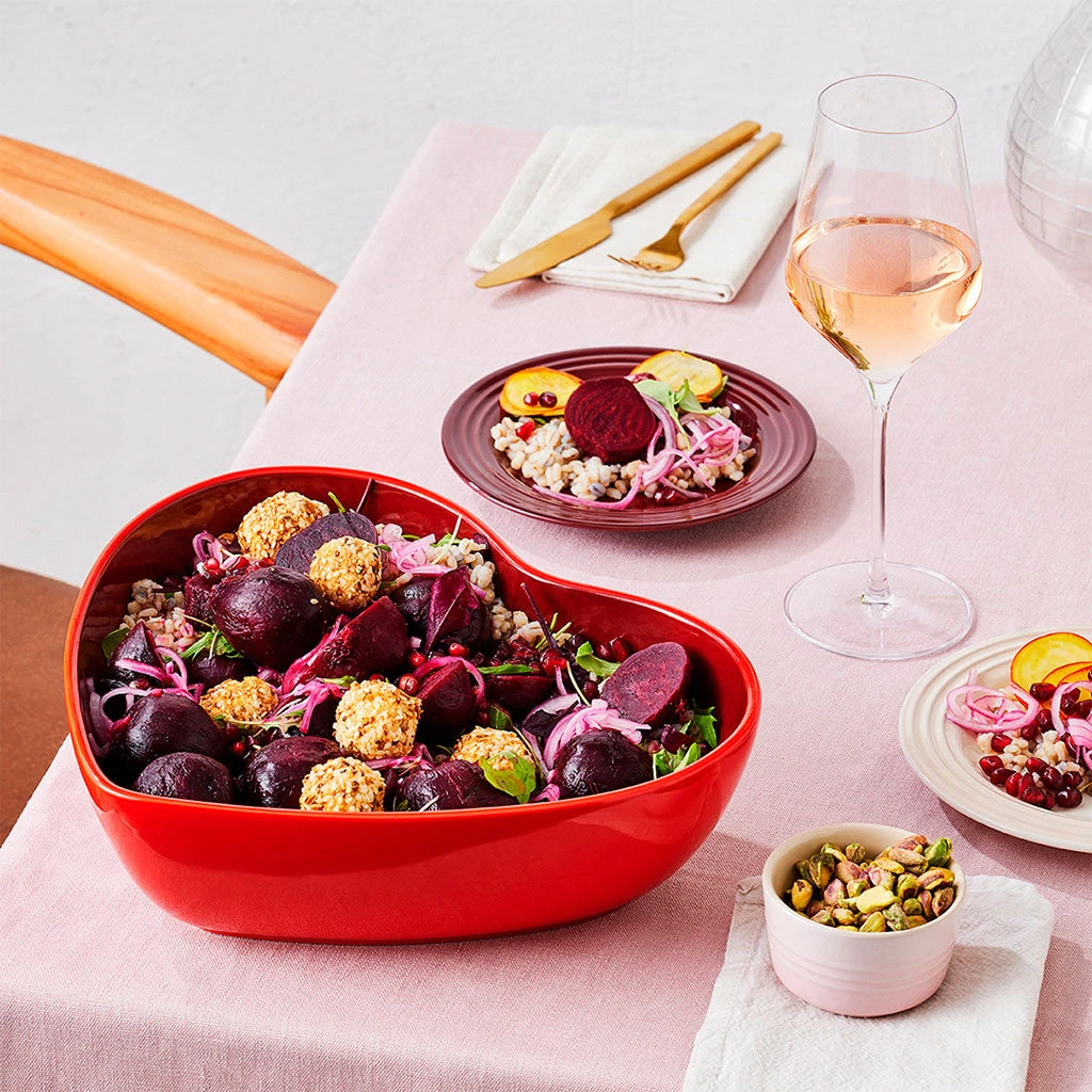 Con el Bol cerámico corazón de Le Creuset tendrás un cuenco tan funcional como precioso, en su encantador diseño en forma de corazón. Perfecto para servir, hornear, calentar o presentar tus recetas, lo usarás para todo. De grandes dimensiones y una generosa capacidad de 2,9 litros, este corazón de cerámica de gres latirá en el centro de tu mesa.