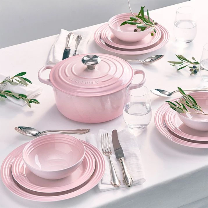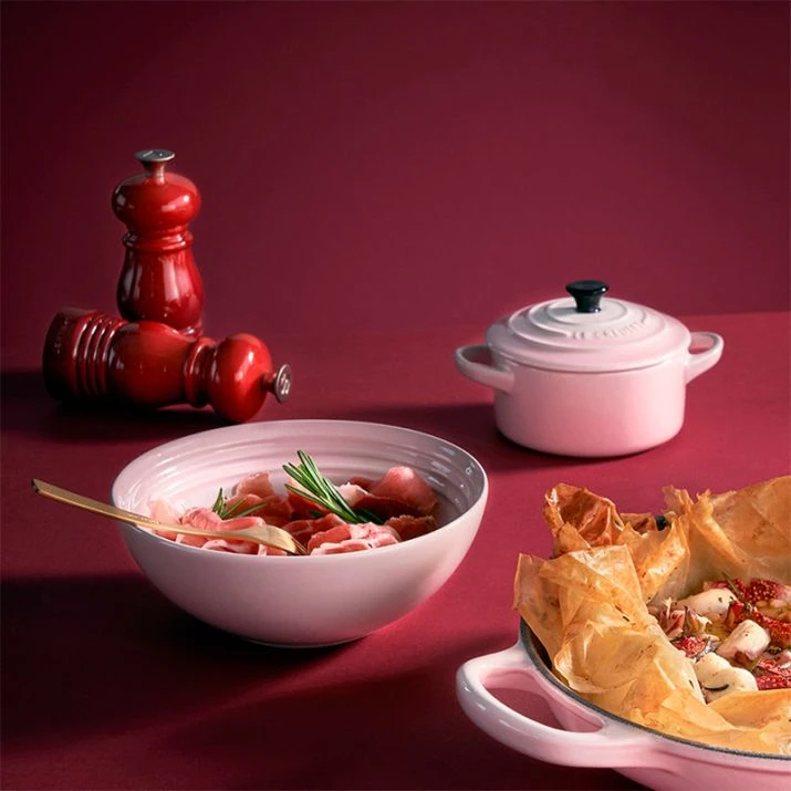 Bol de 650 mililitros de capacidad, de color rosa, de cerámica de gres, de Le Creuset.
