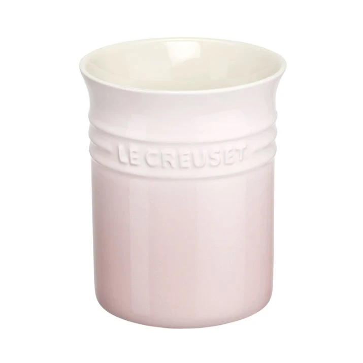 Bote para espátulas de Le Creuset, de color rosa, fabricado en cerámica de gres, para almacenar hasta 20 utensilios de cocina.