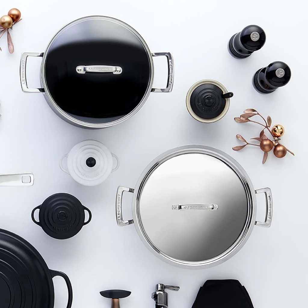 - Tecnología multicapa 3-ply Le Creuset: acero inoxidable y aluminio de alta calidad adheridos para formar un material de tres capas que distribuye el calor de manera uniforme por todo el recipiente.