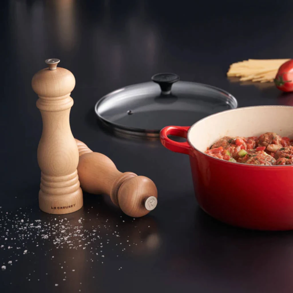 Nota: Si quieres que tu cocotte con tapa de cristal pueda ir al horno hasta los 250 ºC, ¡Es posible! Lo único que debes hacer es cambiar el pomo fenólico por uno de acero (hacerlo es de lo más fácil, se hace simplemente girando un tornillo). Encontrarás el pomos de acero Le Creuset