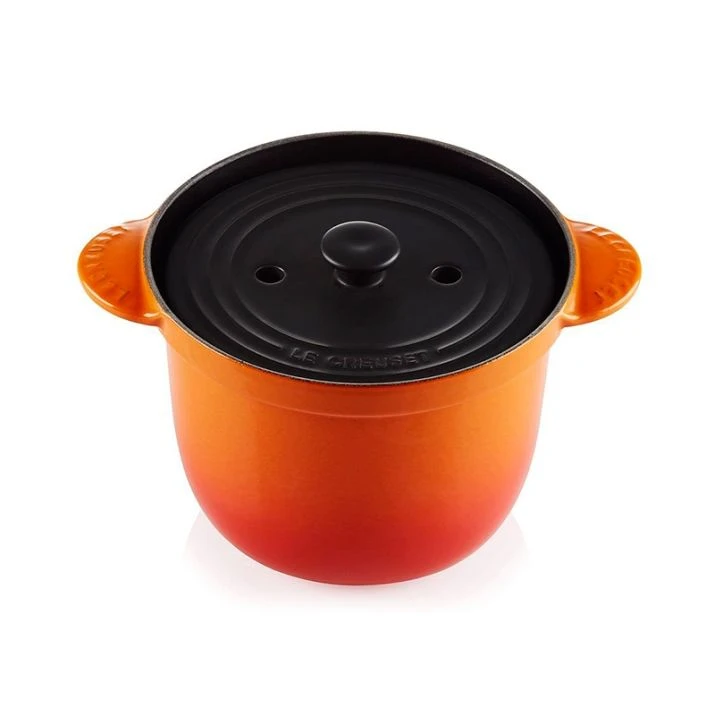 Incluye una doble tapa: la exterior de hierro y la interior de gres tradicional con 2 agujeros que dejan salir el vapor, inspirada en las ollas de barro japonesas.