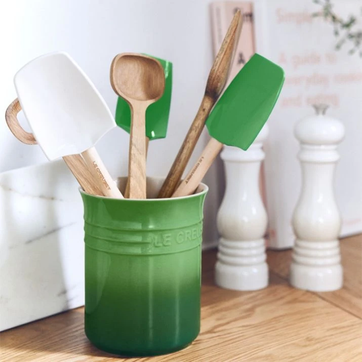 Espátula Craft cuchara de Le Creuset, con cabezal de silicona verde bambú y mango ergonómico de madera.