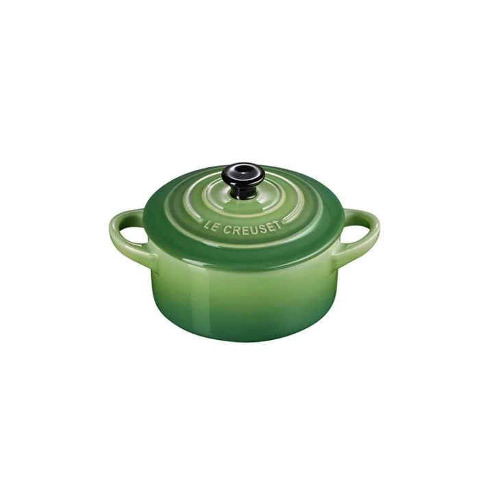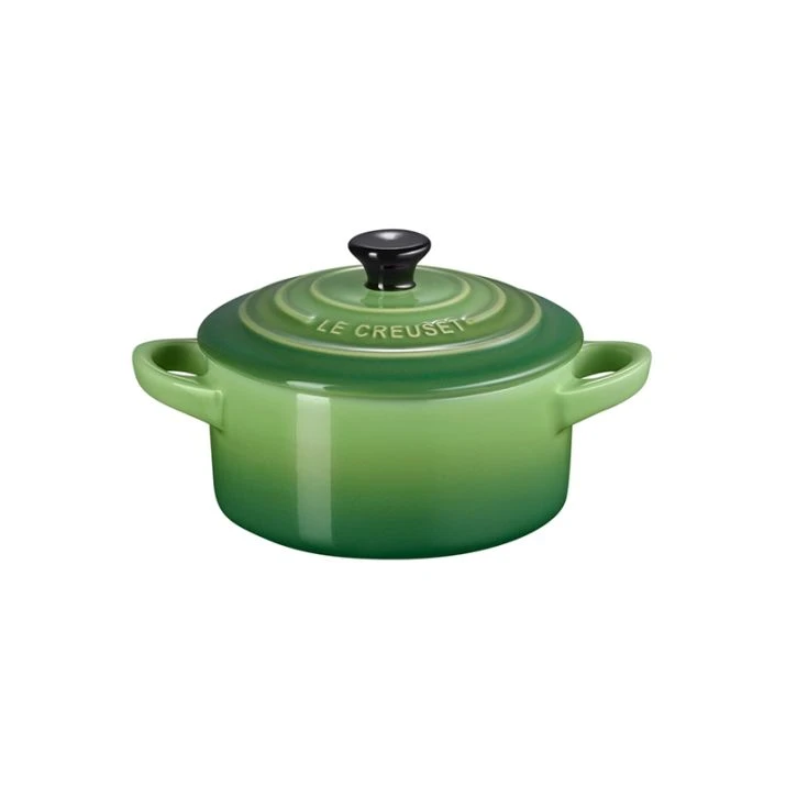 La mini cocotte verde bambú de Le Creuset es una cazuela de cerámica de gres, perfecta para horno y microondas.