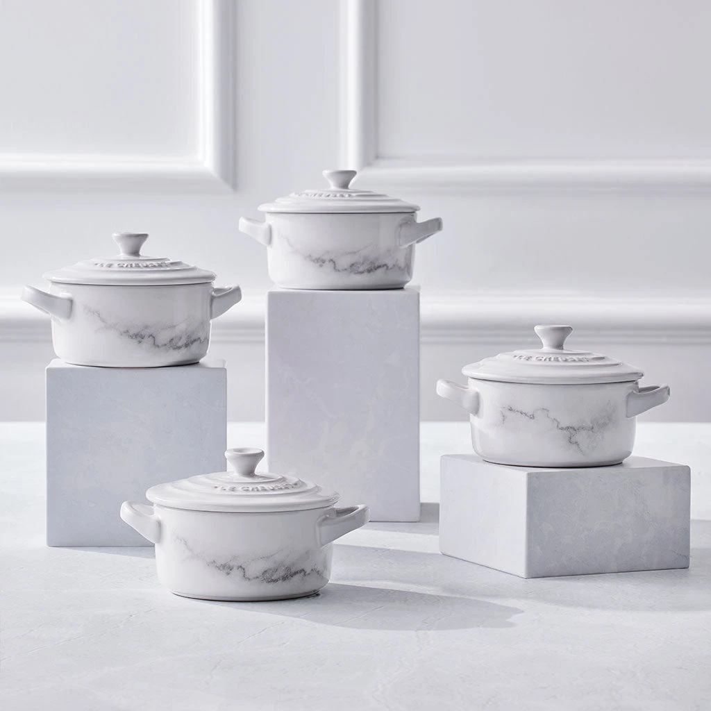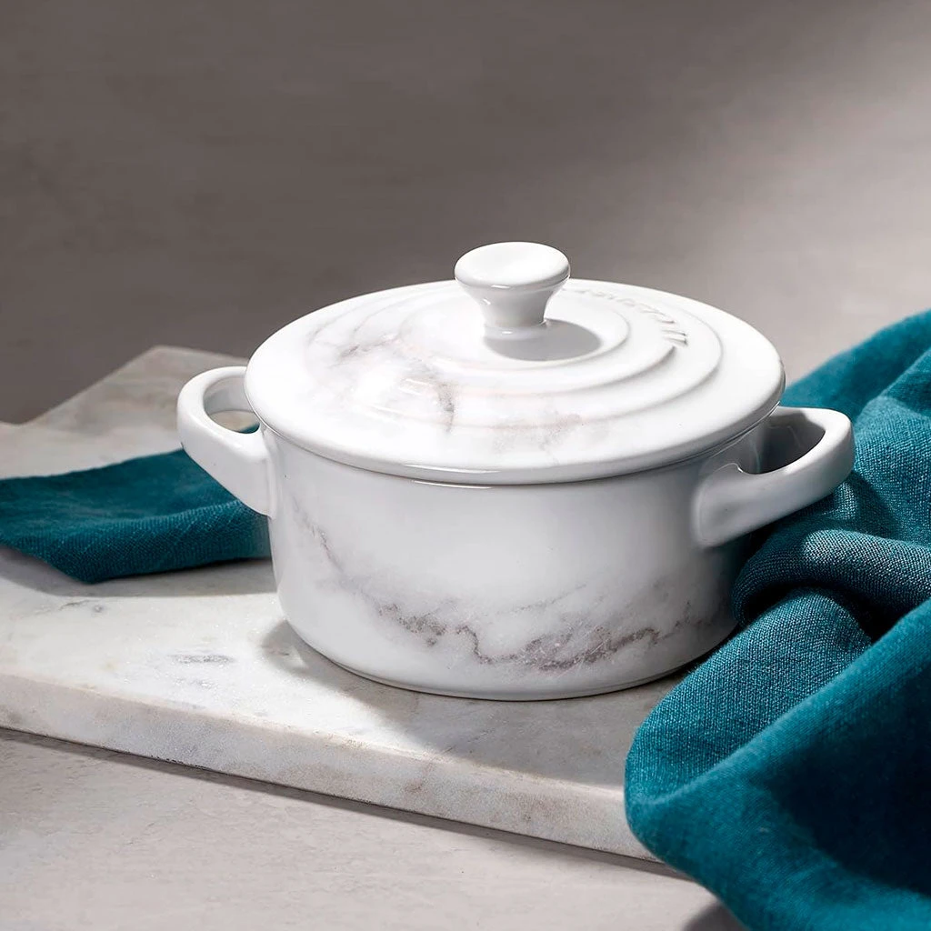 Le Creuset ha conseguido un esmaltado sin igual: su apariencia al mármol hace que la clásica mini cocotte Le Creuset se convierta en una obra de arte (de hecho, ¡es una edición con unidades limitadas en todo el mundo!).