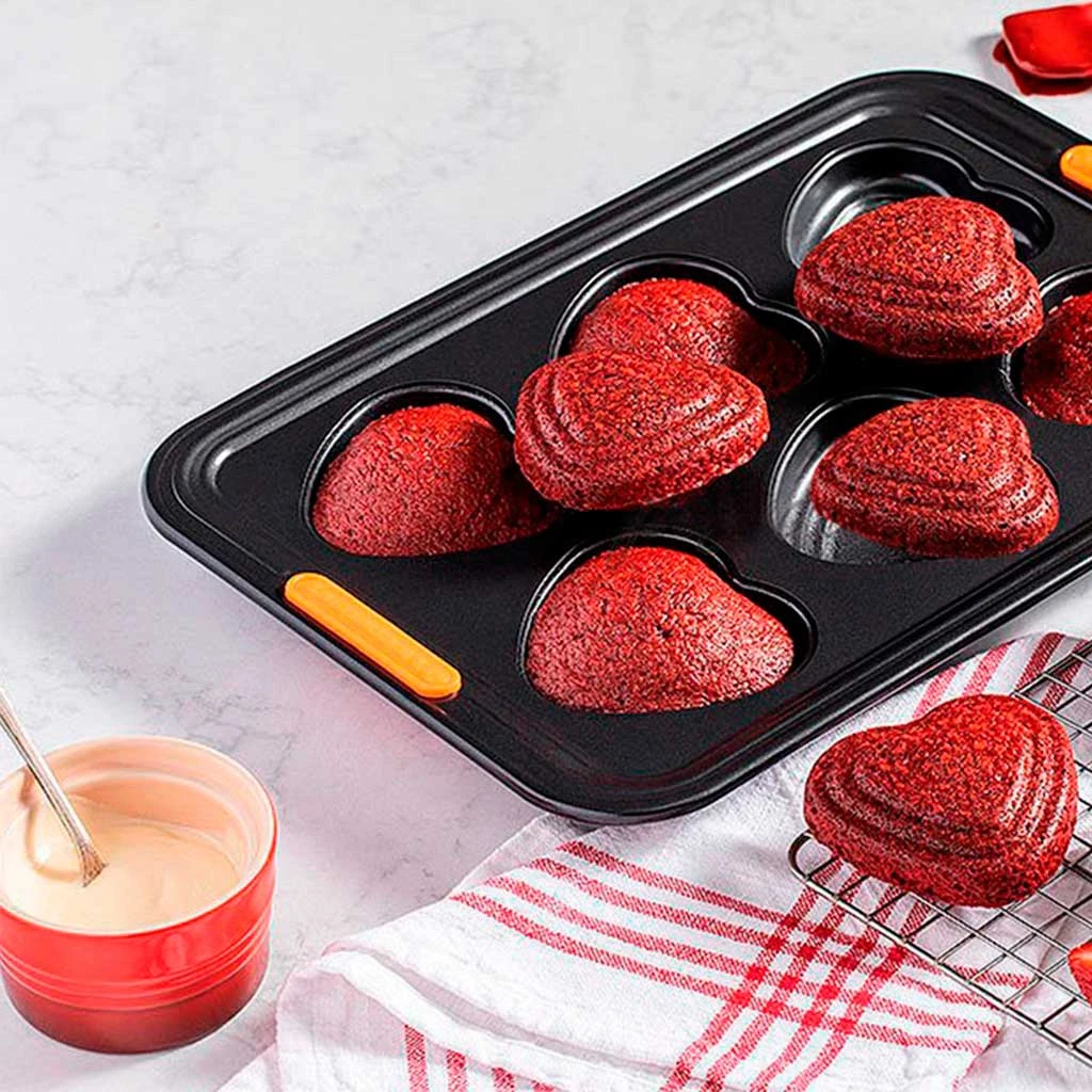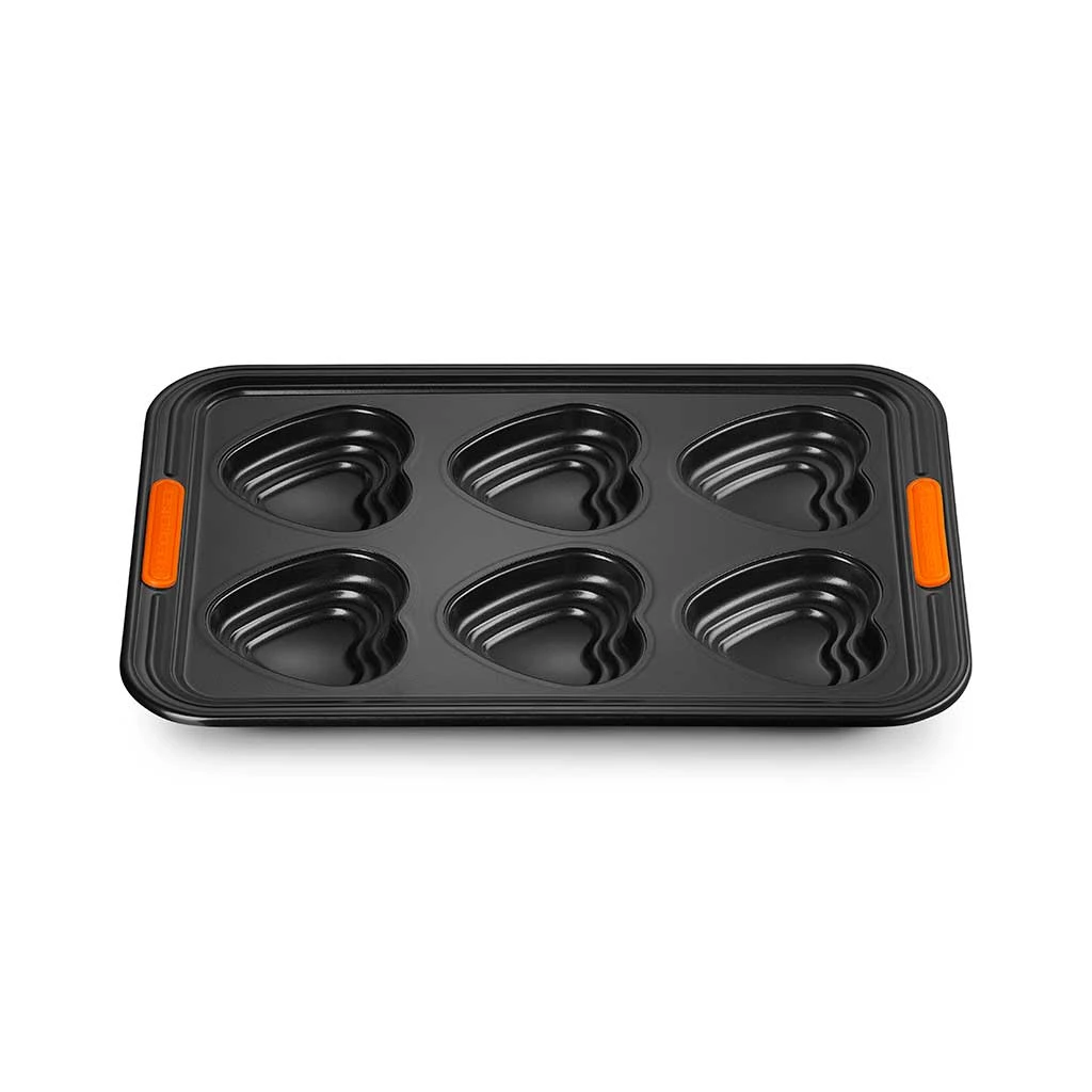 El Molde 6 bizcochos corazón Le Creuset es ideal para que puedas hornear seis preciosos bizcochitos caseros en forma de corazón, para saborearlos con las personas a las que más quieres. Con una cocción perfecta y sin que se pegue nada, podrás utilizar este molde antiadherente para muchísimas otras creaciones culinarias, ¡tanto dulces como saladas!