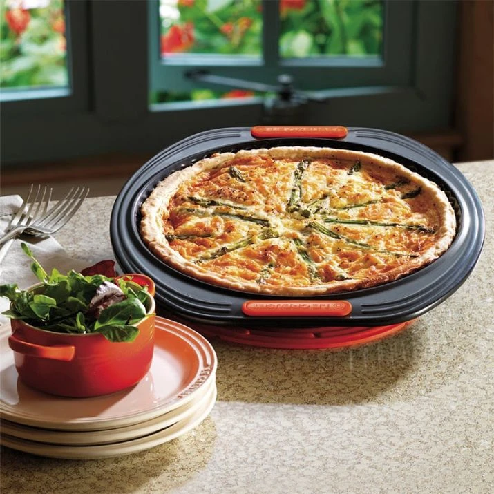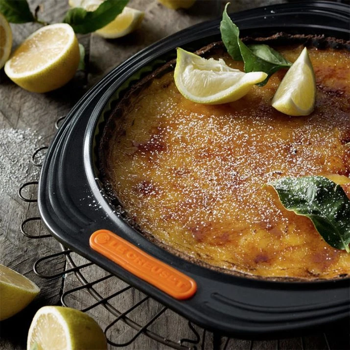 Molde antiadherente redondo con base extraíble y con borde ondulado de Le Creuset, fabricado en acero al carbono de gran espesor.