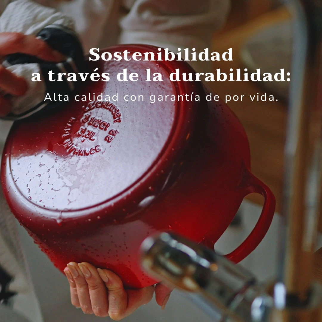 - Pátina Natural: El esmalte interior desarrolla una pátina que mejora sus propiedades antiadherentes con el tiempo.