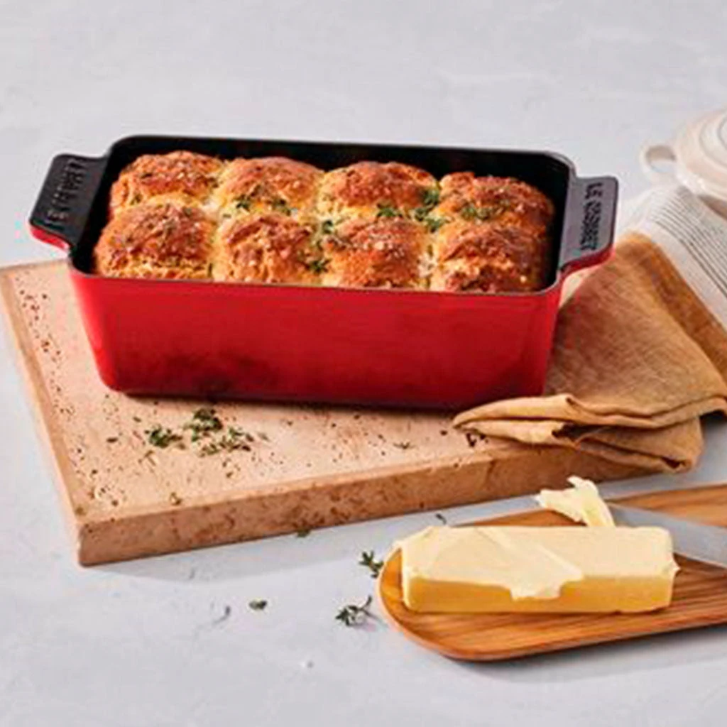 Explora el potencial de tu cocina con el Molde de hierro fundido rectangular Le Creuset, y transforma cada receta en una obra de arte.