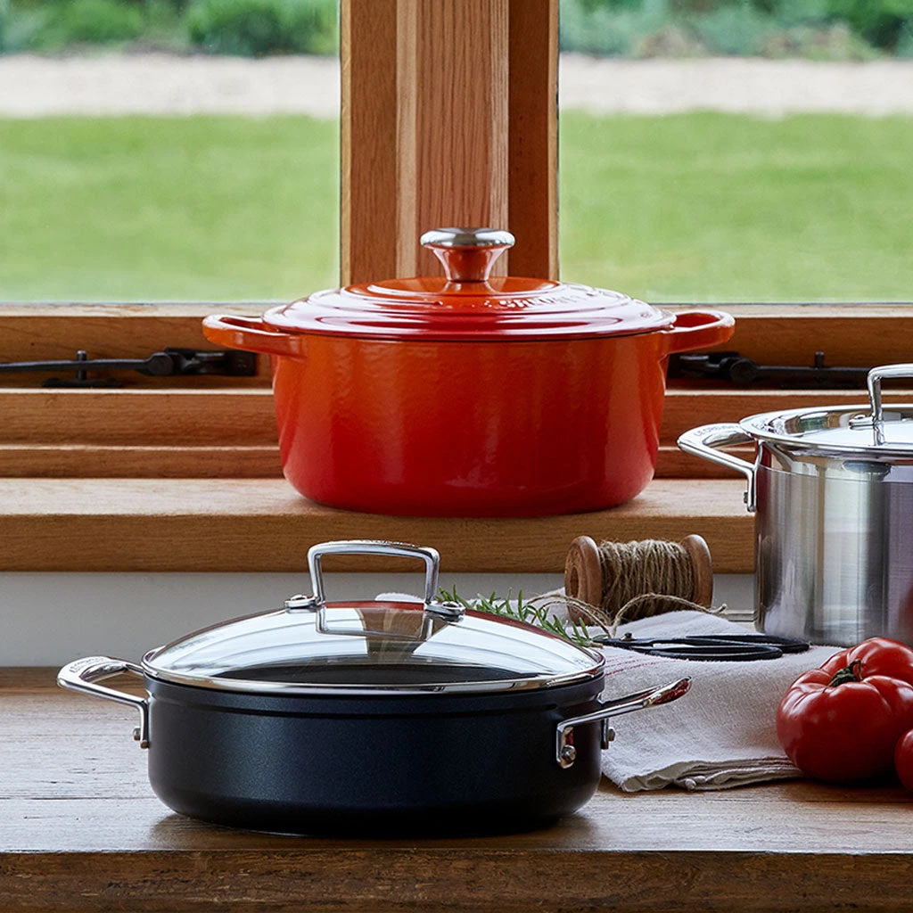 La Cacerola Rustidera antiadherente de Le Creuset lo tiene todo para convertirse en una pieza imprescindible en tu cocina. Gracias a su excelente antiadherente, a sus paredes rectas y altas, que permiten una mayor capacidad, y su gran versatilidad, vas a disfrutar cocinando tus mejores recetas en esta estupenda cazuela, tanto en el fuego como en el horno. Además, es una cacerola con tapa, lo que te ayuda a un calentamiento más rápido de tus recetas, a un reparto del calor aún más óptimo y a mantenerlo caliente más tiempo cuando lo llevas a la mesa.