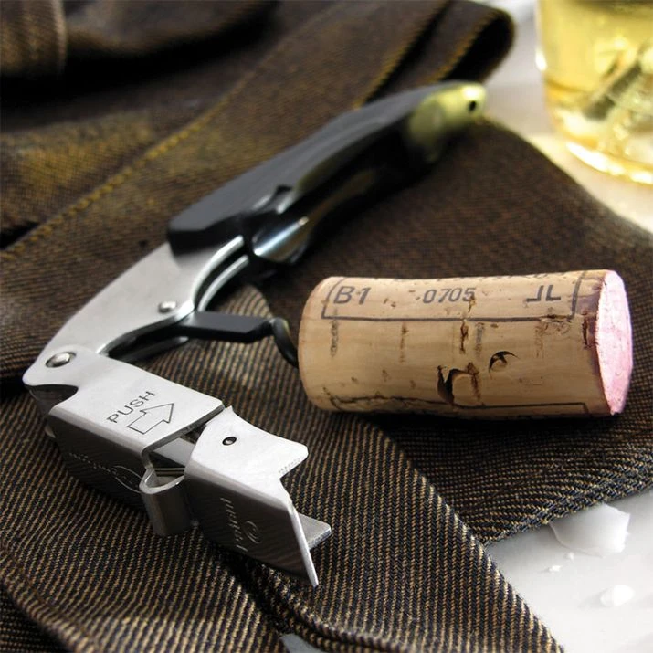 Además, cuenta con una cuchilla para cortar la cápsula de las botellas y un abridor de latas.
