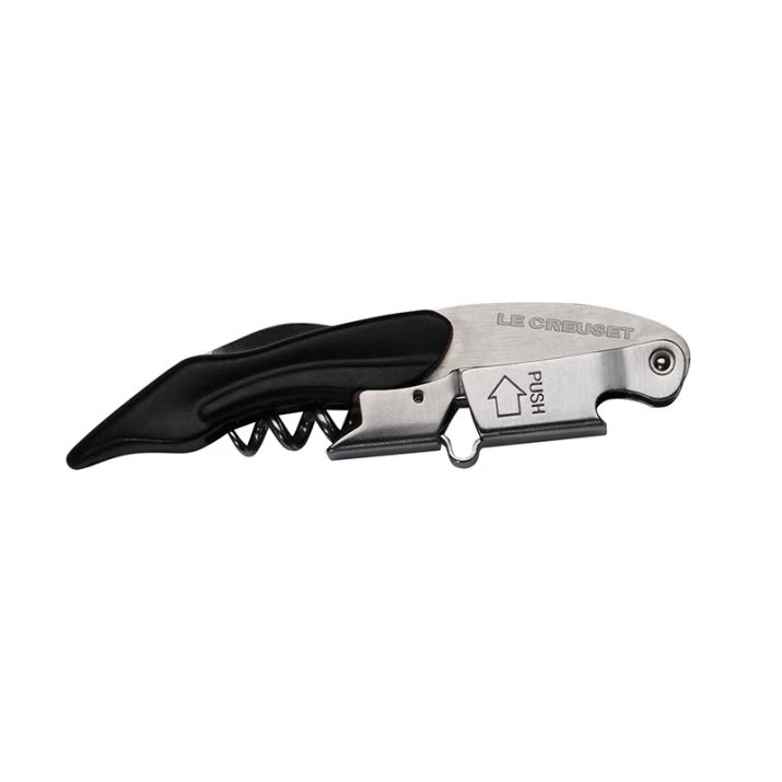Sacacorchos Sommelier 2 tiempos negro de Le Creuset, con cuchilla para cortar la cápsula.