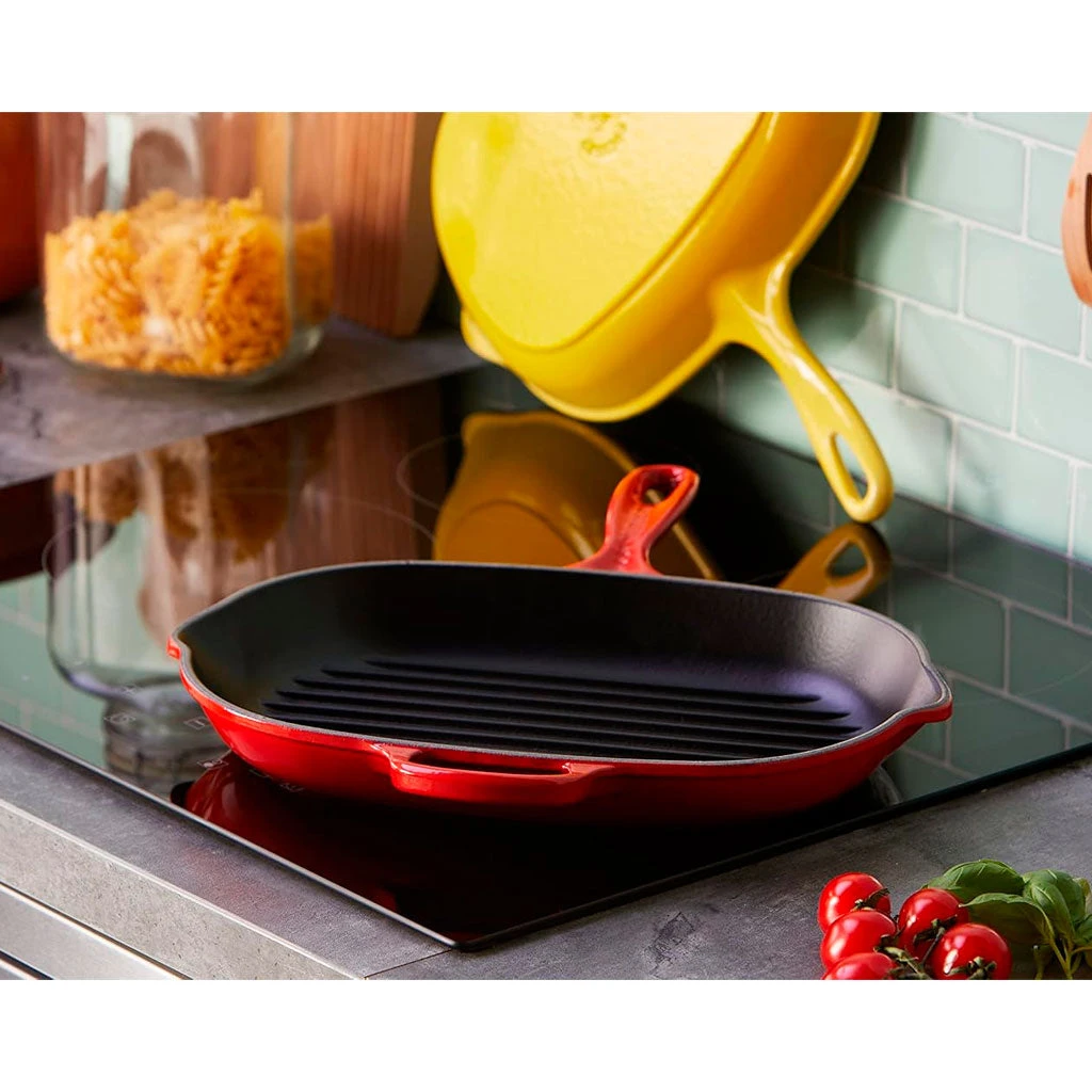 Con la Sartén skillet grill oval Le Creuset vas a cocinar a las mil maravillas, ¡y para toda la familia! Esta parrilla cuenta con una amplia superficie de cocción que te va a permitir sellar generosas raciones o grandes piezas de una sola vez. Carnes, pescados, verduras, y también pizzas, cocas o empanadas, tanto en los fogones, como en el horno o en la barbacoa.