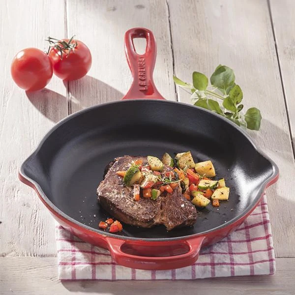 Las sartenes skillet de hierro fundido Le Creuset son un clásico para cualquier cocinillas con aspiraciones. Esta sartén skillet es perfecta para cocinar de forma ligera, natural y usando poca grasa, a la plancha, así como para saltear, freír o hacer todo tipo de recetas al horno.