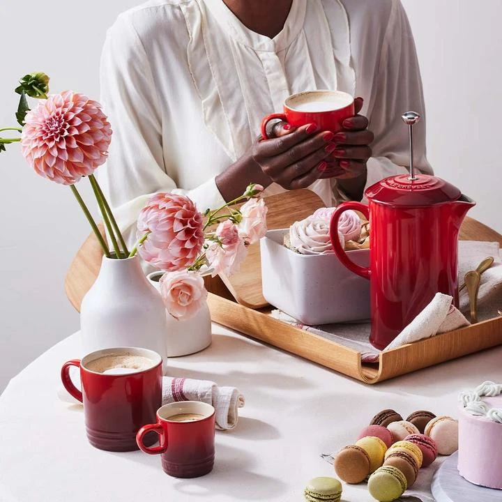 La cerámica esmaltada de Le Creuset es duradera y resistente a pequeños golpes y rayaduras. Y podrás usar tus tazas para todo, ya que no absorben olores ni sabores: té, café, cremas dulces o saladas, ¡e incluso para cocinar tus mug cakes!