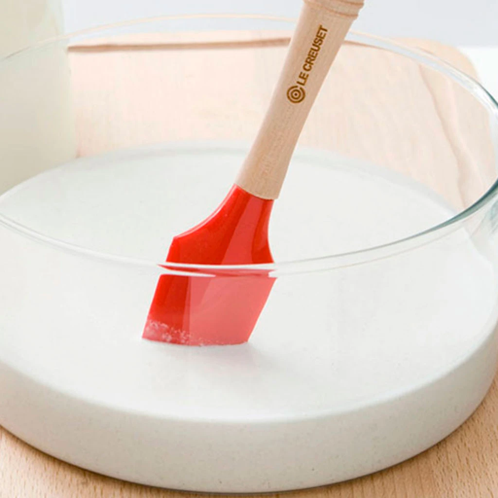 - Mango de madera y cabezal de silicona totalmente segura para los alimentos.