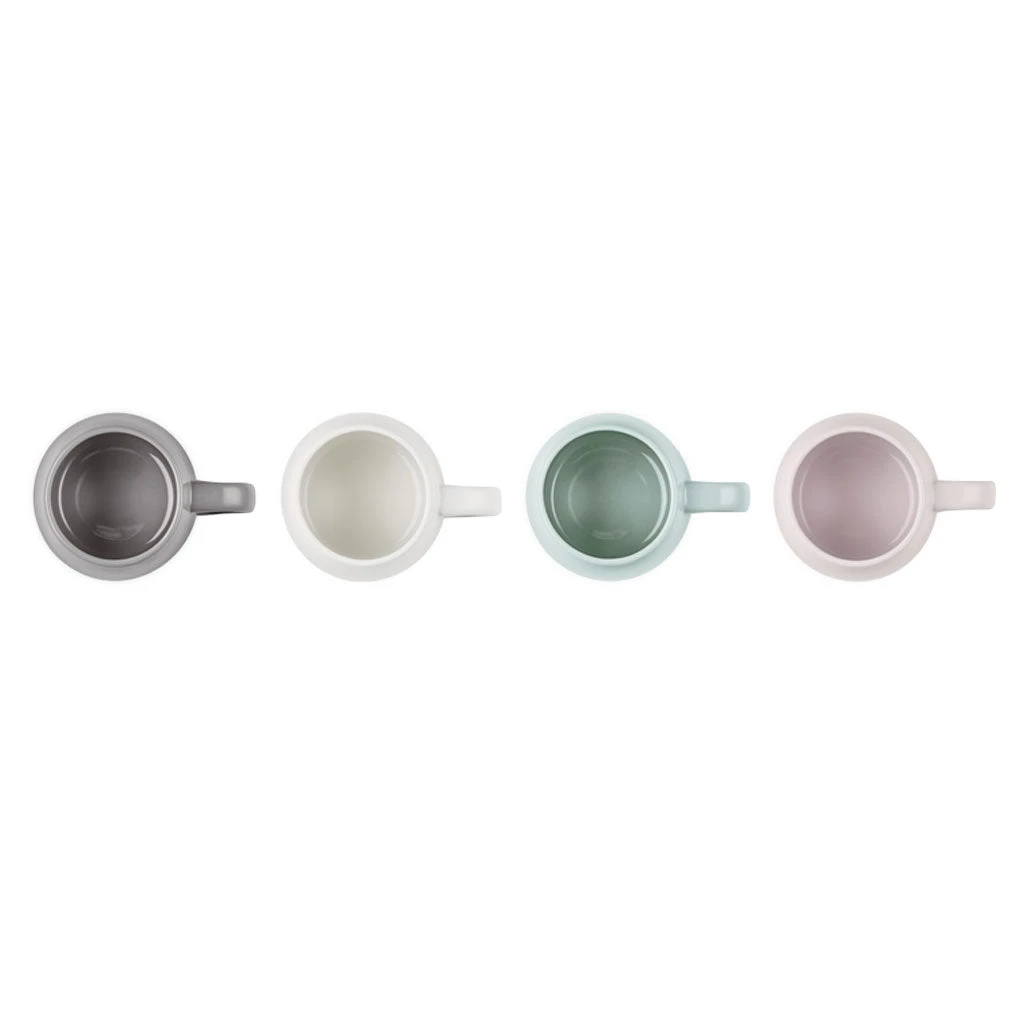 Este set incluye cuatro tazas, cada una con uno de los preciosos esmaltados de la colección Coupe: Sea Salt, Shell Pink, Meringue y Flint, y como todas las piezas de cerámica de gres de Le Creuset, se caracterizan por: