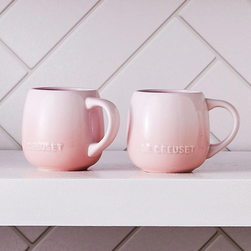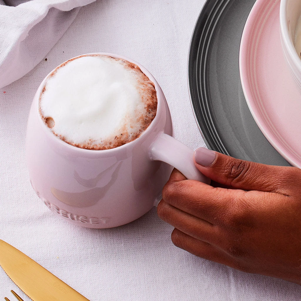 En los cuatro preciosos esmaltados, Sea Salt, Shell Pink, Meringue y Flint, las tazas del set son unas piezas encantadoras tanto para tomar el café o la leche del desayuno, para servir un consomé o una crema fría durante la comida o la cena, o para saborear el té de la tarde, un batido, el yogur con cereales o un buen chocolate caliente.