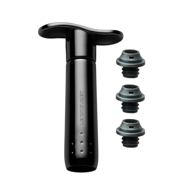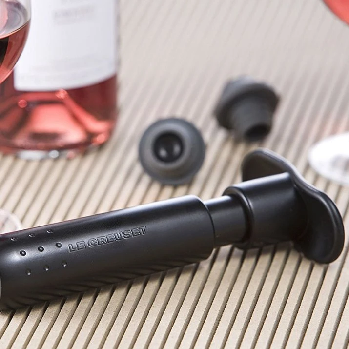 La bomba de vacío de Le Creuset conserva el vino eliminando el aire del interior de la botella abierta y cerrándola herméticamente con el tapón.