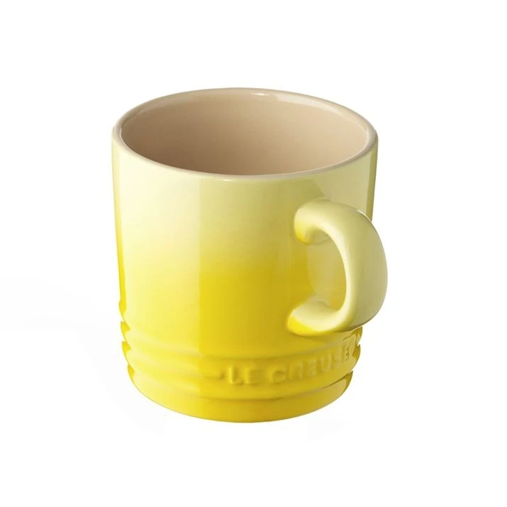 La taza amarilla de Le Creuset está fabricada en cerámica de gres, perfecta para horno y microondas.