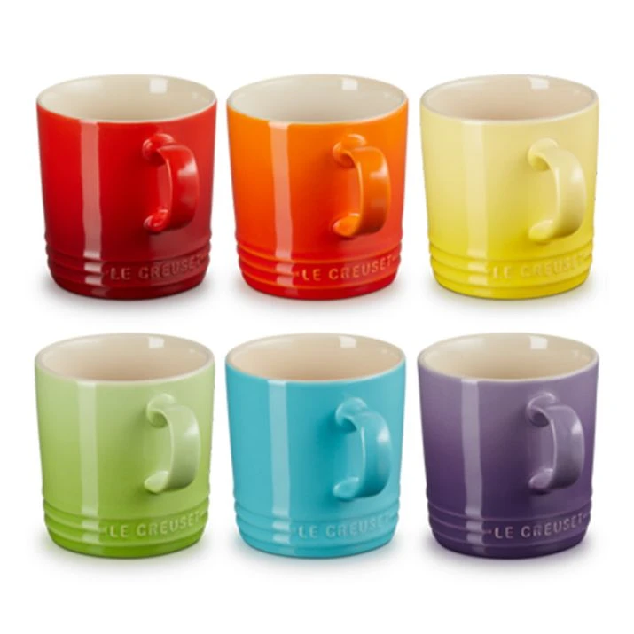 Set de 6 tazas de diferentes colores, de Le Creuset, fabricadas en cerámica de gres, perfectas para horno y microondas.