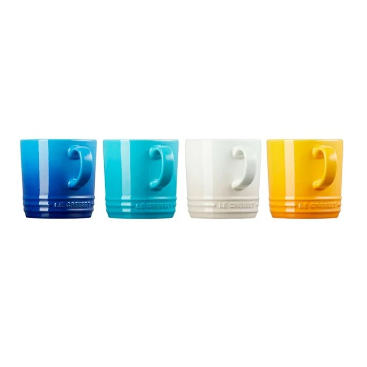 Set de 4 tazas de colores de Le Creuset, fabricadas en cerámica de gres, perfectas para horno y microondas.