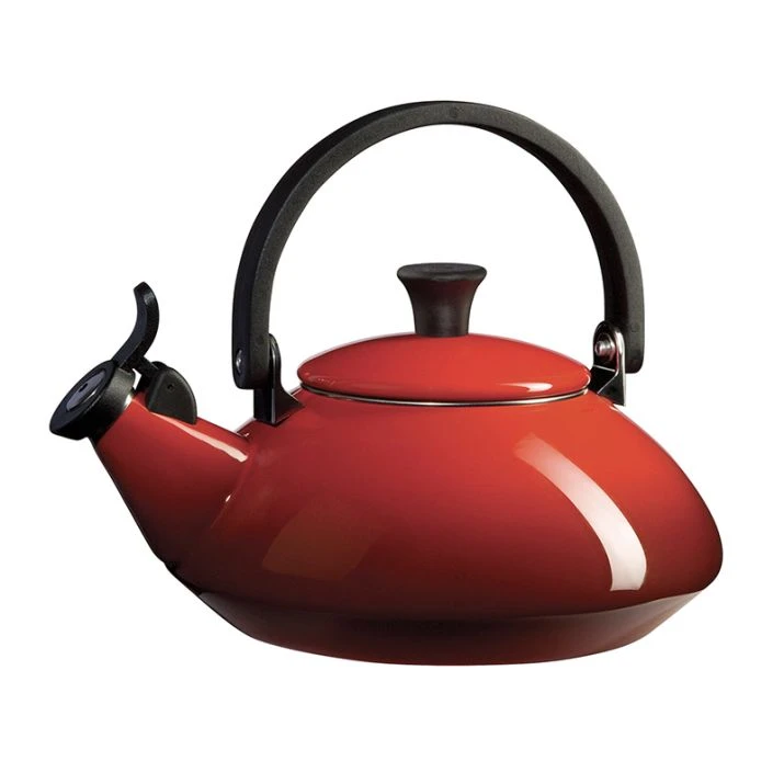 Tetera Zen roja de Le Creuset, con cuerpo fabricado en acero esmaltado tanto interior como exterior.