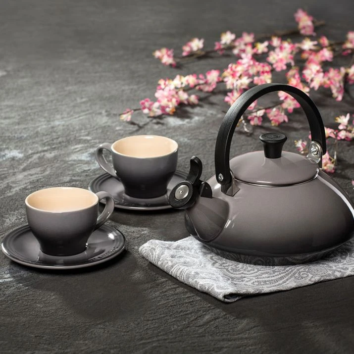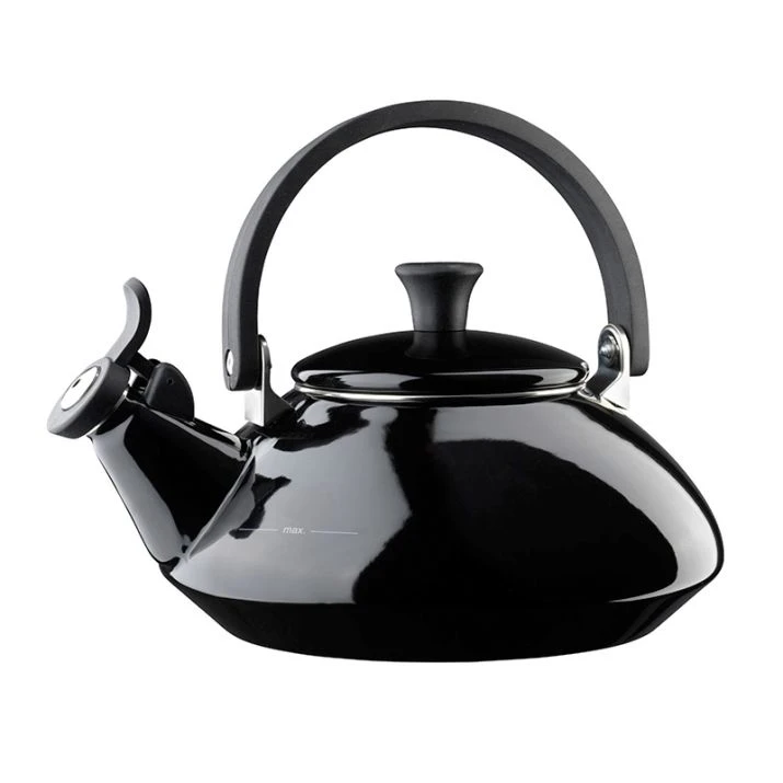 Tetera Zen negra de Le Creuset, con cuerpo fabricado en acero esmaltado tanto interior como exterior.