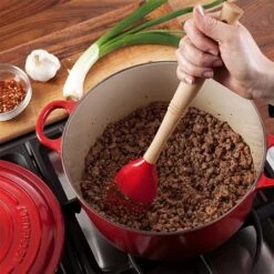 Espátula Pro Cuchara Con Mango De Madera 32,5 Cm Cereza – Silicona – Le Creuset