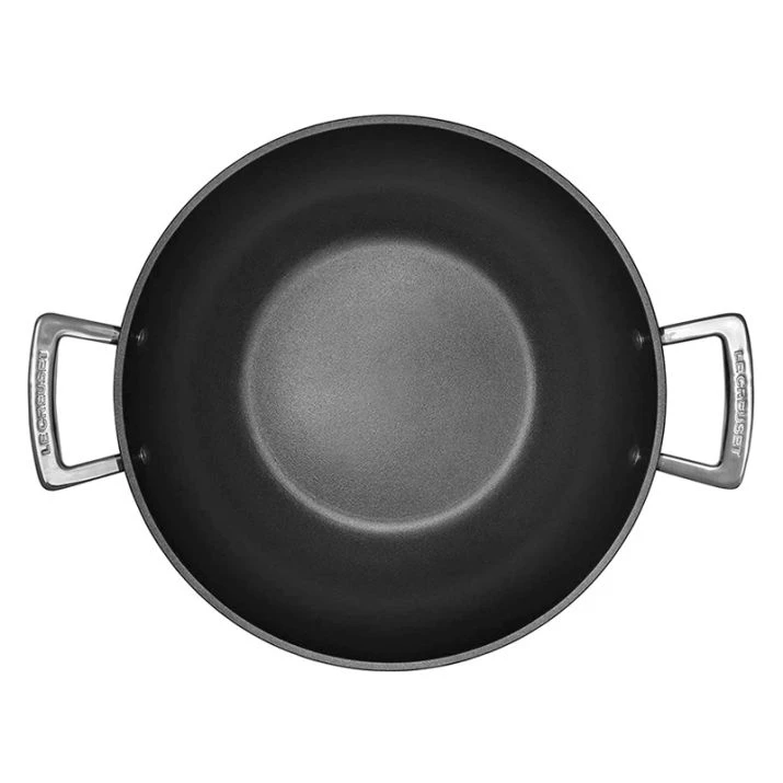 Wok con 2 asas de Le Creuset, de aluminio forjado y con un nuevo antiadherente TNS PRO, hasta 4 veces más fuerte.